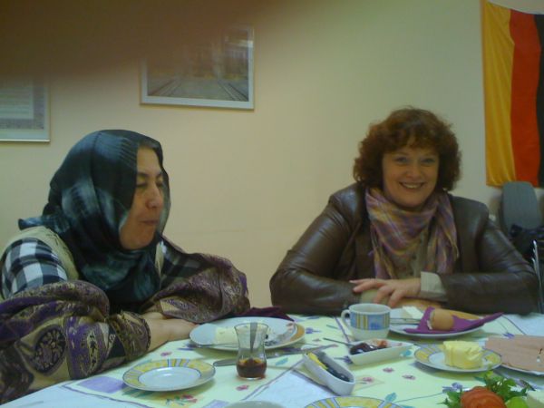 Dazu war beim 2. Treffen zwischen den muslimischen Frauen der DITIB - Moschee an der Langenbergstraße und der Gruppe "Frauenfrühstück um die 40" reichlich Gelegenheit. Nach einem ausgiebigem Frühstück gab es einen interessanten Vortrag über die Fünf Säulen des Islams. Die Besichtigung der Moschee mit ihrer Gebetsnische, der Vortrags- und Predigtkanzel war der Höhepunkt dieses Morgens, war es doch für viele das erste Mal, daß sie eine Moschee besuchten. Gegenseitige Einladungen zu den Festivitäten der Jubiläumswoche anläßlich der 700 Jahr Feier der Liebfrauenkirche und des Frühlingsfestes an der DITIB-Moschee vom 22.-24.05.2010 zeigten, daß auch dieses Treffen ganz im Zeichen von Gastfreundschaft und gegenseitigem Interesse stand.