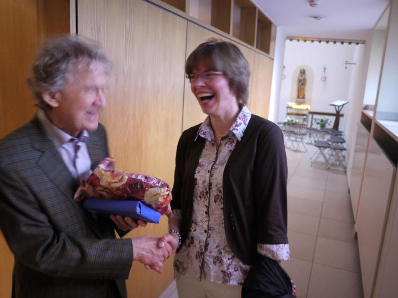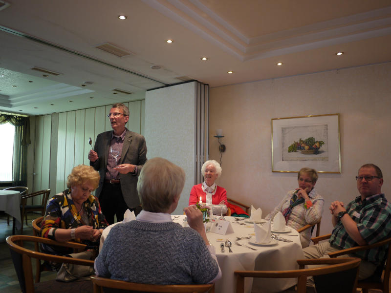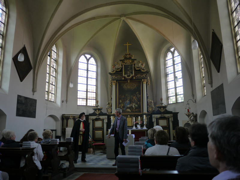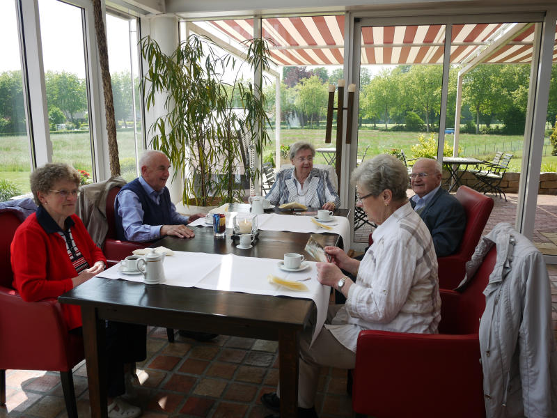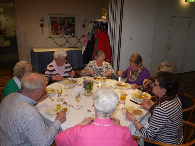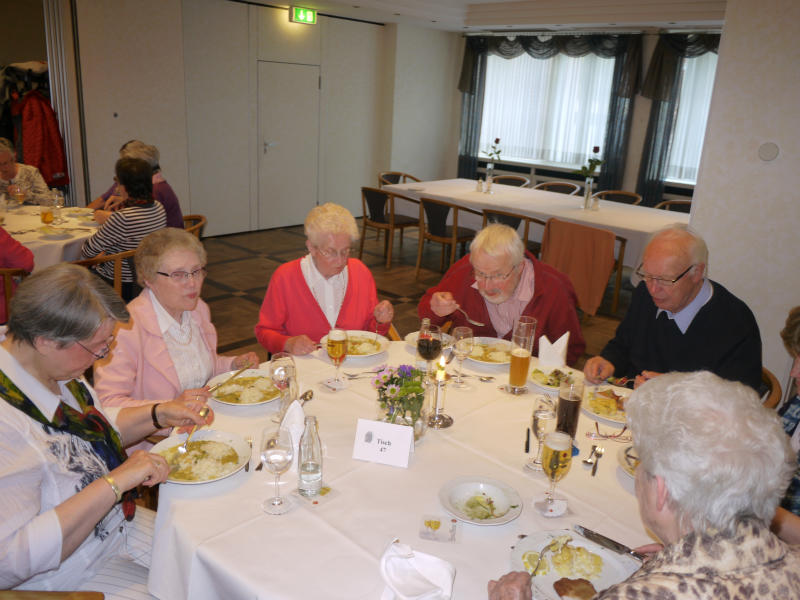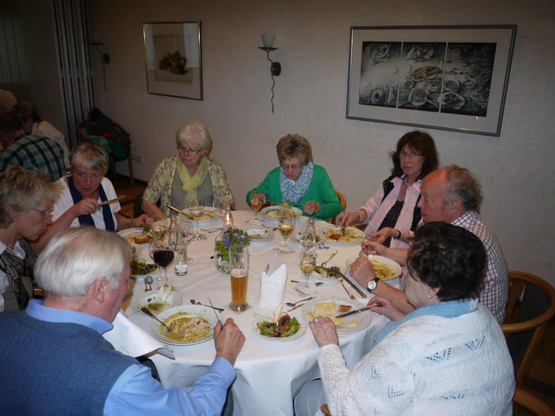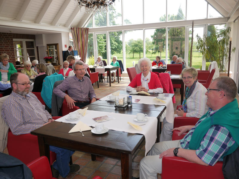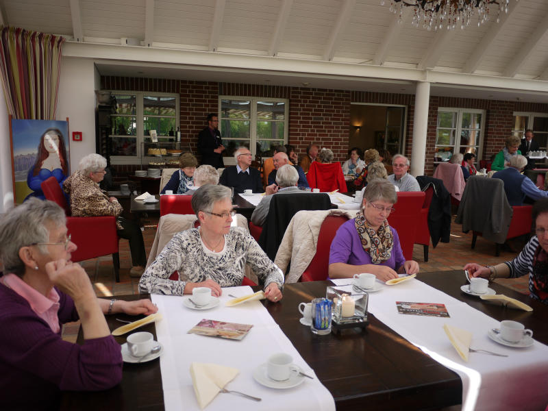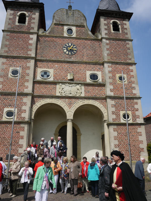 Wie in jedem Jahr unternahm die Chorgemeinschaft Herz-Jesu für alle aktiven und passiven Mitglieder wieder einen Tagesausflug. Im Vordergrund dieses Ausflugs stand der Besuch bei Pfarrer Klaus Hageböck in Borken. Zu dieser Reise hatte der Vorstand natürlich wieder ein Rahmenprogramm „gestrickt“. So ging es am Samstag, 17. Mai bei herrlichem Frühsommerwetter um 12:00 Uhr von der Herz-Jesu Kirche mit dem Bus nach Raesfeld. Das Ziel war zunächst das eindrucksvolle, historische Wasserschloss Raesfeld. Hier angekommen ging die Sängergruppe bei einem kurzem Sparziergang durch die malerische Schlossfreiheit zur 350 Jahre alten Schlosskapelle. Vom Burgkastellan erfolgte sodann eine kurzweilige, informative Führung durch die Kapelle und anschließend über das Schlossgelände. Ein Blick in den historischen Rittersaal schloss die interessante, spannende Führung des Raesfelder Wasserschlosses ab. Zur Stärkung ging es anschließend zu einem nahegelegenen Cafe". Im Wintergarten dieses schönen Lokals gab es reichlich Kuchen und Kaffee. Auf der Fahrt nach Borken forderte unsere Chorleiterin, Monika Hebing, uns zum Einsingen auf. In der Krankenhauskapelle des Borkener St. Marien Hospitals feierten wir um 16.30 Uhr mit Pfarrer Hageböck einen eindrucksvollen Gottesdienst. Für Pfarrer Klaus Hageböck war es aufgrund seiner Krankheit nach sechs Monaten der erste Gottesdienst, den er zelebrierte. Er war sehr erfreut über unseren Besuch und dankte vor allem für unseren feierlichen Chorgesang mit österlichen wie auch marianischen Gesängen während der Messfeier. Ein weiterer Höhepunkt war nach dem Gottesdienst das reichhaltige Abendessen in einem nahegelegenen Restaurant. Mit Monika Hebing am Klavier ließen die Chormitglieder mit heiteren Gesängen diesen gelungenen Tagesausflug ausklingen.