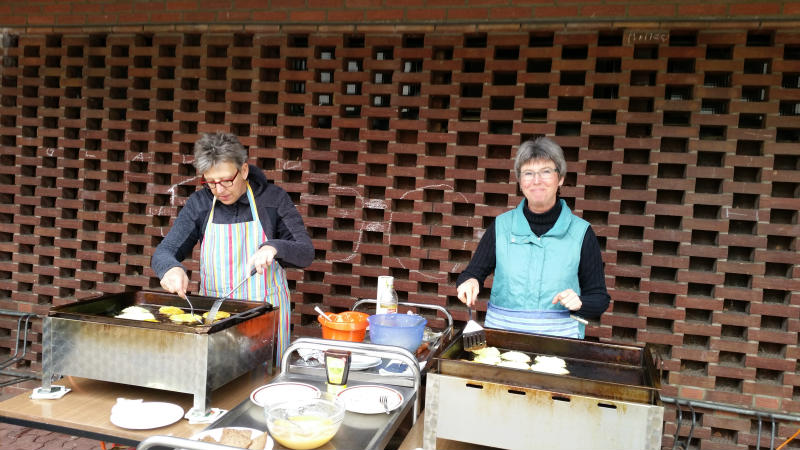 Die Pellkartoffeln mit Heringsstipp oder Kräuterquark, sowie Reibepfannekuchen schmeckten allen vorzüglich, was durch großzügige Spenden zum Ausdruck gebracht wurde.