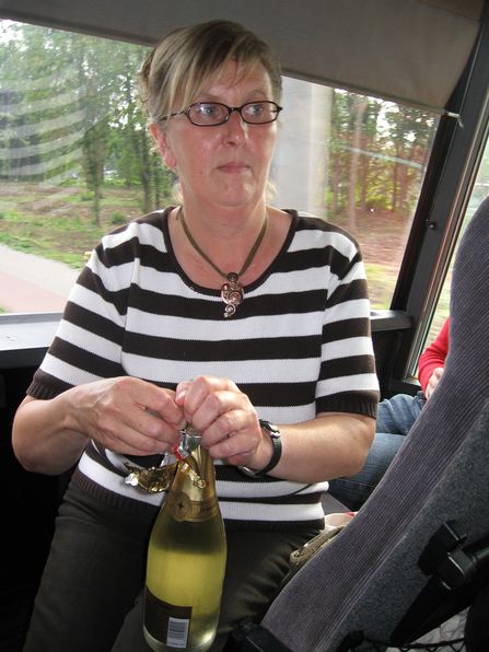 Auf der Rückfahrt wurde die Priesterweihe mit einem Gläschen Sekt gefeiert.