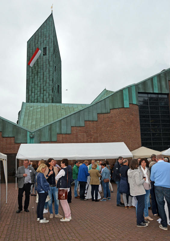 Der Einladung, beim Abend der Begegnung mit mindestens zwei Menschen zu sprechen, die man noch nicht kennt, kamen am Mittwochabend, 29.06.2016, zahlreiche Gäste des „Willkommensfestes St. Paul und Liebfrauen“ nach. Nach dem stimmungsvollen Festgottesdienst in der vollbesetzten St. Paul – Kirche kamen die Besucher in guter Stimmung zum Beisammensein auf dem Kirchplatz St. Paul zusammen. Hier klang der Abend bei kühlen Getränken, Gegrilltem und zahlreichen Gesprächen langsam aus.Ein „Danke schön“ gilt allen, die vor und hinter den Kulissen sowie durch aktives Mitfeiern zum Gelingen dieses Festes beigetragen haben!