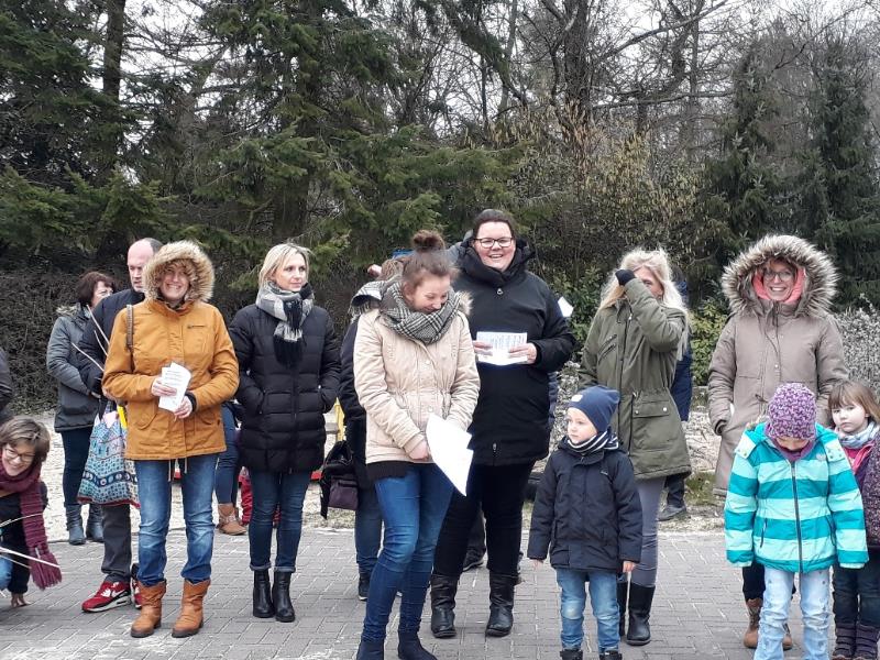 Das Fest war ein gelungener Abschluss einer spannenden und erlebnisreichen Kinderbibelwoche.In dieser Woche haben wir uns besonders mit den Bibelgeschichten von Zachäus und dem Einzug in Jerusalem beschäftigt. In den einzelnen Kindertageseinrichtungen haben alle Kinder an unterschiedlichsten Aktionen zu diesem Thema mitgearbeitet. Es wurde anhand von Bildkarten die Geschichte von Zachäus erzählt, die Kinder haben wichtige Gegenstände der Kirche mit einem Suchspiel entdeckt, sind nach Jerusalem gereist, um Jesus zu besuchen, u.v.m. Ein Kreuz haben viele Kinder unserer acht Kindertageseinrichtungen bei dem Kinderbibelfest am 23.März 2018 gestaltet. Jedes Kind durfte einen Handabdruck, als Zeichen unserer Gemeinschaft, auf das Tuch drücken. Das Ergebnis, kann man in der Liebfrauen Kirche sehen.