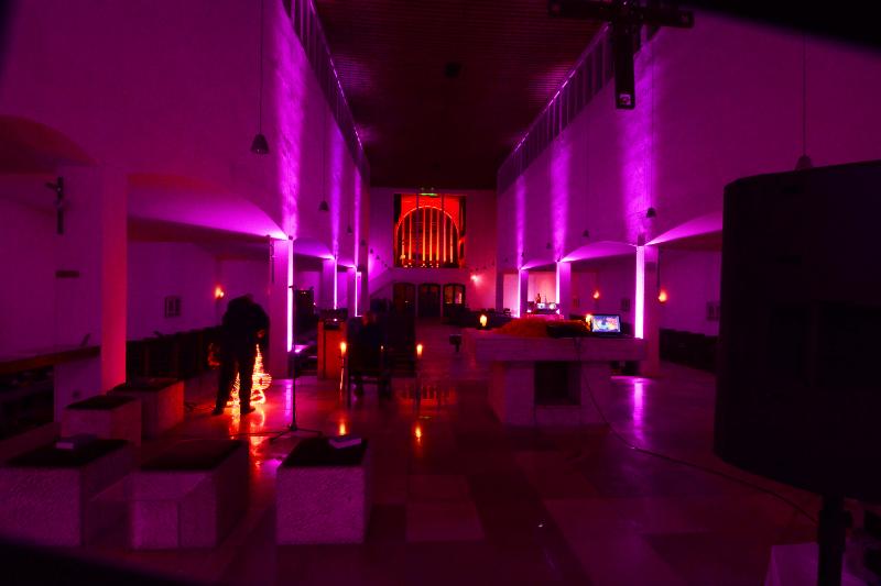 Sternen-Geflüster: Einen Moment der Ruhe konnten die Besucher beim Besuch der Agnes-Kapelle genießen. Das Gewölbe der Kapelle wurde zum Sternenhimmel. In dieser stimmungsvollen Atmosphäre lauschte man Impulstexten und Musik. Außen farbenfroh illuminiert präsentierte sich die Hl. Kreuz-Kirche. Hier wurde die Fülle der eigenen Sinne angesprochen: Sinn-Segen. Viele Besucher ließen sich hier von unterschiedlichen Düften, Klängen und Lichtinszenierungen verzaubern. Die Kirchennacht endete in jeder Kirche mit einem Segen zur Nacht. Allen, die mit ihrem Engagement und ihren Talenten, in der Vorbereitung sowie bei der Veranstaltung selbst zum Erfolg der Kirchennacht beigetragen haben, sei an dieser Stelle herzlich gedankt.