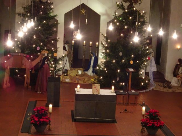 Auch, wenn heute schon im Supermarkt um die Ecke alles Weihnachtliche verschwunden ist und stattdessen Clownskostüme zum Kauf angeboten werden und Karnevalsmusik erklingt, dauert nach dem liturgischen Kalender die Weihnachtszeit von Heiligabend bis zum Fest der Taufe des Herrn, d.h. bis zum Sonntag nach dem 6. Januar.Insofern hatte der Herz-Jesu-Chor unter der Leitung von Monika Hebing noch mal am 12.01.2019 die schöne Gelegenheit, einige Stück aus dem großen Schatz der Weihnachtslieder auszuwählen und in der Vorabendmesse in der eigenen Kirche zu singen. So erklang beispielsweise das „Kyrie“ aus der Pastoral-Messe von Ignaz Reimann oder das sehr bekannte Lied „Menschen, die ihr war`t verloren“ als Überchor zum Gemeindegesang. Ebenso entschied man sich für das traditionelle Stück „Still, o Himmel, still, o Erde“, das aus Tirol, genauer aus dem Chiemgau stammt. Es folgte zur Gabenbereitung das „alte Hirtenlied zur Weihnachtszeit“ ein Wechselgesang zwischen Frauen- und Männerstimmen. Zur Danksagung erlang das „Panis Angelicus“, von César Franck, dessen Solopart von unserem Tenor Markus Holtick mit so großer Intensität vorgetragen wurde, dass er alle damit begeistern konnte. Der Gottesdienst wurde beendet mit „O du fröhliche“ und Pfarrer Kroppmann bedankte sich noch mal sehr beim Chor und bei Monika Hebing für die wunderbare musikalische Gestaltung.