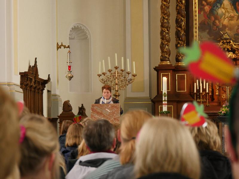 Großes Betriebsfest der Angestellten der Pfarrei LiebfrauenEs war großartig und es hat viel Spaß gemacht - das große Betriebsfest aller Angestellten der Pfarrei Liebfrauen! Mit einer Infokarte an einem Eßlöffel gebunden, waren alle eingeladen sich am vergangenen Freitag in der frühen Mittagszeit um 13.30 Uhr in einer der sieben Kitas im Stadtgebiet der Pfarrei Liebfrauen einzufinden. Bunt gemischt waren die Gruppen, die dort zusammentrafen: Erzieherinnen und Erzieher, Hausmeister, Küster und Küsterinnen, Gärtner, Kirchenmusiker, Sekretärinnen und das Seelsorgepersonal. Den Nachmittag verbrachten die Mitarbeiterinnen und Mitarbeiter bei Kaffee, Plätzchen und Sekt mit dem Basteln von kreativen Namenschildern sowie der Zubereitung von Salaten für das abendliche Grill-Buffet. Zudem wurden die Gruppen vom Nachtwächter (Florian Sauret) und Kirchenschweizer (Pfr. Rafael van Straelen) aufgesucht. Diese stellten nicht nur ihre Berufe vor, sondern führten auch die „Löffelkontrolle“ durch, da alle ihren Löffel zu diesem Betriebsfest mitzubringen hatten. Schließlich kamen die Löffel auch bei einem Spiel, bei dem es um Teamgeist und Schnelligkeit ging, und „einem Schluck vom Löffel“ zum Einsatz.