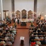 Am heutigen Sonntag haben wir Abschied von unserer Herz-Jesu-Kirche genommen. In einem bewegenden Gottesdienst feierten viele Christen aus der Pfarrei, dem Gemeindeteil Herz Jesu und denen die sich mit der Herz-Jesu-Kirche verbunden fühlen, eine stimmungsvolle Messfeier. Musikalisch wurde diese vom Kinderchor und Kirchenchor Herz Jesu mitgestaltet. In seiner Predigt erinnerte Pfarrer Rafael van Straelen daran, dass unser Glauben auf Jesus Christus gebaut ist und wir durch unsere Taufe und Firmung lebendige Steine der Kirche sind, die auch in diesem Gotteshaus gewirkt haben.Nach der Kommunion brachte eine kleine Abordnung das Allerheiligste in die Liebfrauenkirche und der stellvertretende Vorsitzende des Kirchenvorstands Manfred Rademaker verlas das Profanierungsdekret von Bischof Felix Genn. Zum Auszug kam noch einmal Unruhe auf, weil die Kirchenmusiker, anders als geplant, das Schlusslied accapella anstimmten. Das konnte aber schnell geklärt werden: Denn die Orgel hatte einen Stromausfall und konnte nicht mehr erklingen. Dies sorgte für Erheiterung bei den Mitfeiernden.
