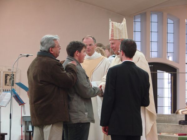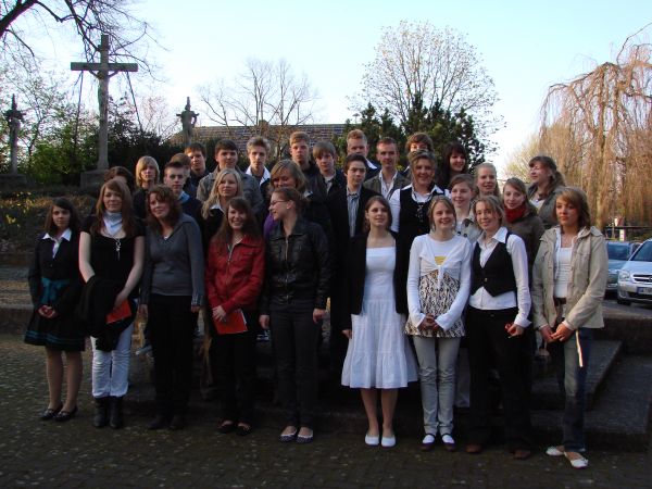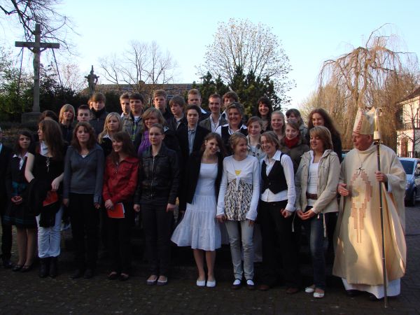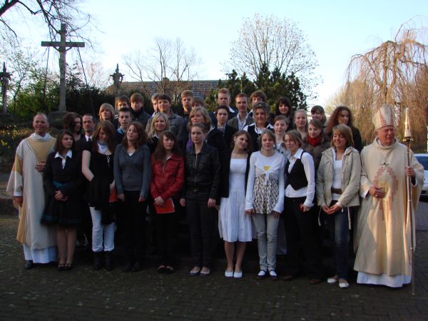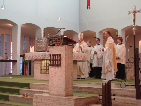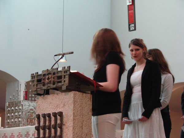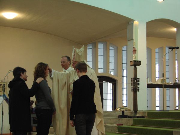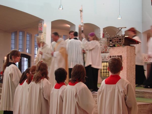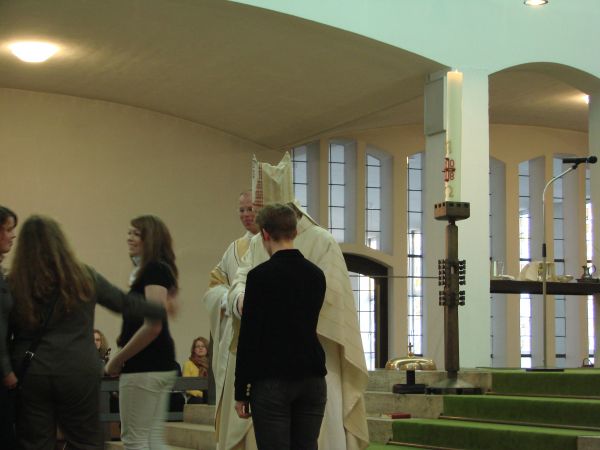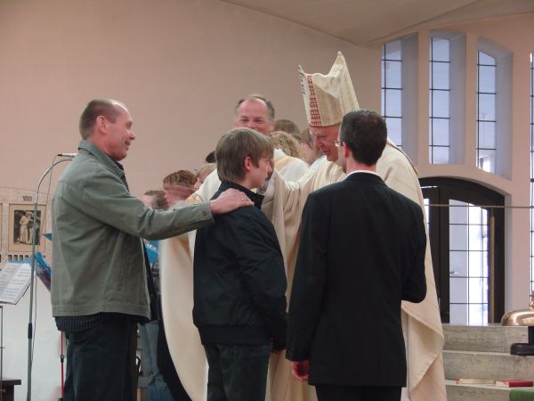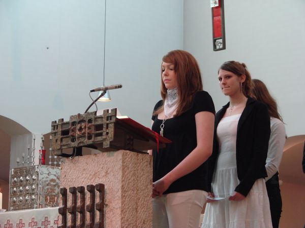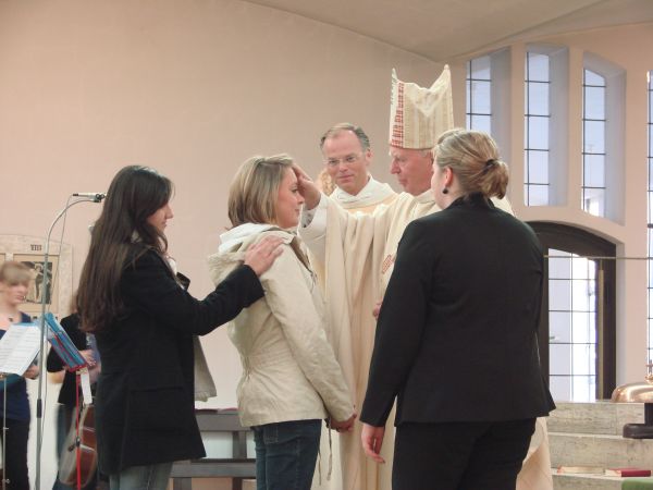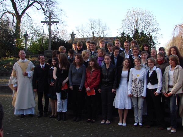 Unter diesem Motto haben am Dienstag 31 Jugendliche unserer Gemeinde Heilig Kreuz das Sakrament der Firmung erhalten. Der Gottesdienst wurde von Weihbischof Friedrich Ostermann und Pfarrer Dr. Klaus Winterkamp gehalten. Der Weihbischof spendete dabei folgenden Firmlingen das Sakrament der Firmung: