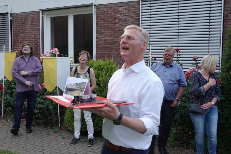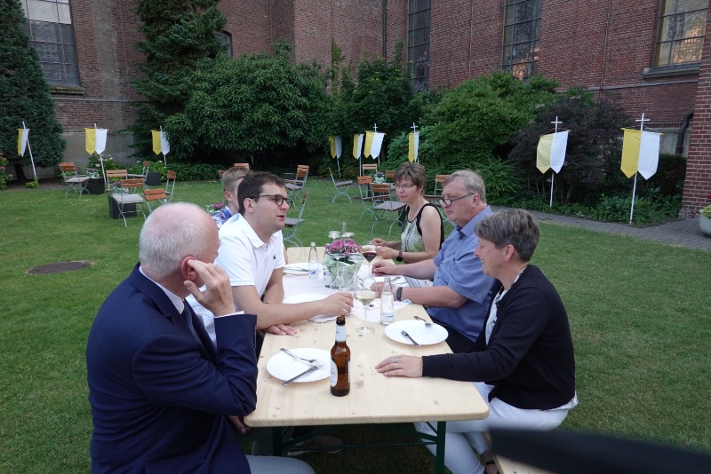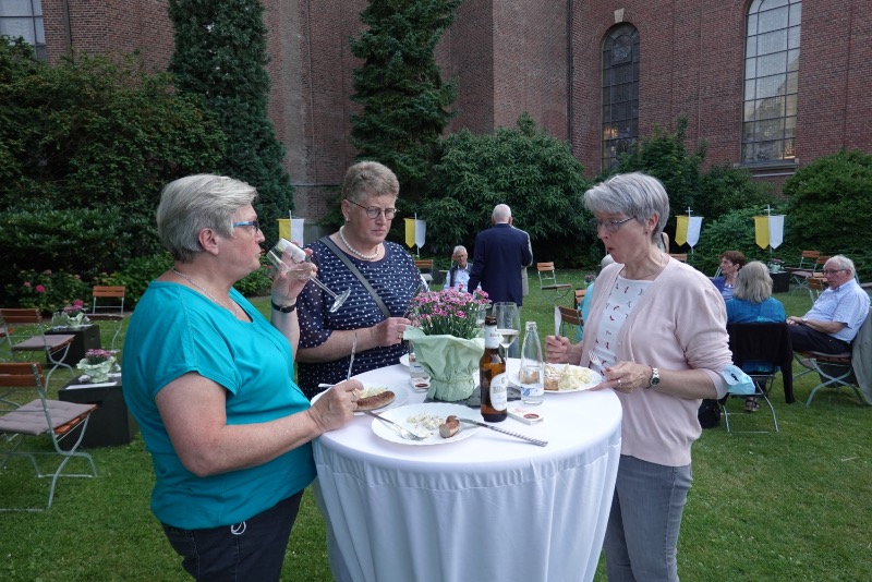 Beim anschließenden Empfang  im Pfarrgarten nutzten etliche Besucher, die Gelegenheit sich von Pfarrer Wietholt zu verabschieden. Â