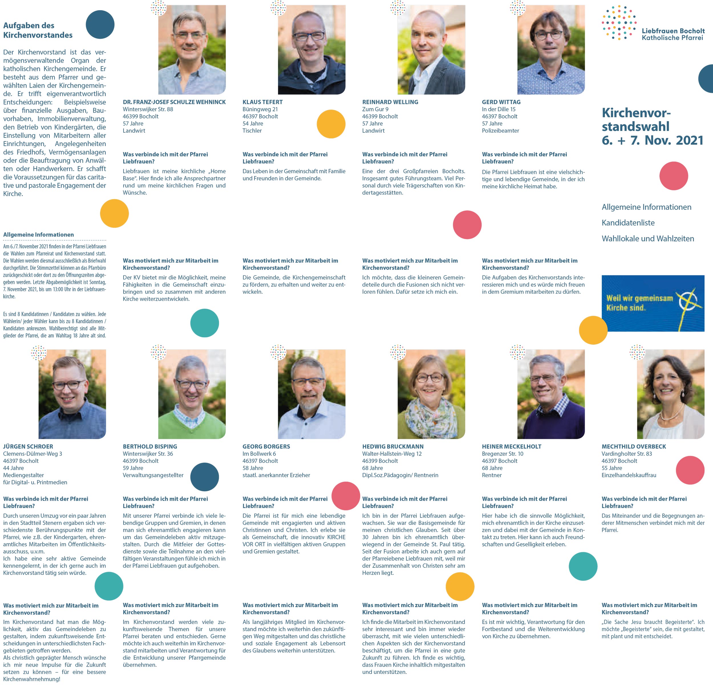 Kandiaten zur Kirchenvorstandswahl in Liebfrauen Bocholt für das Jahr 2021