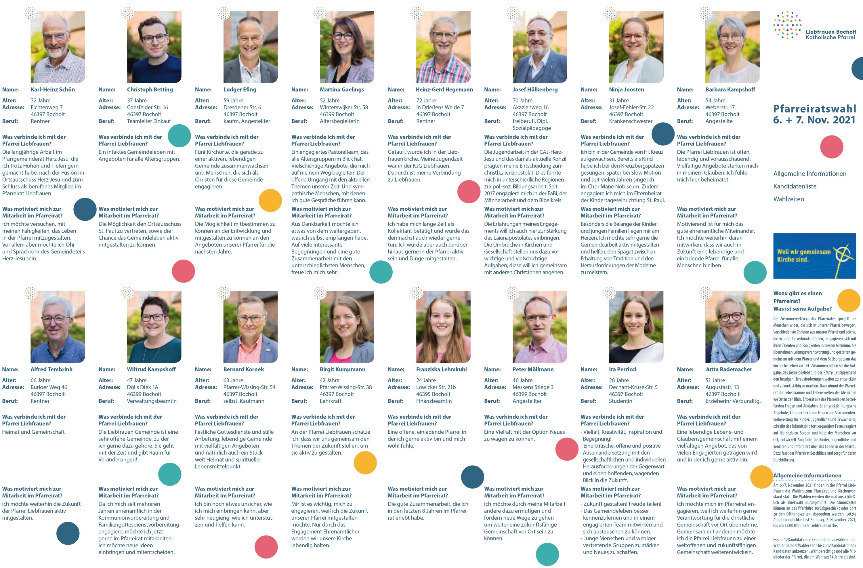 Kandiaten zur Pfarreiratswahl in Liebfrauen Bocholt für das Jahr 2021