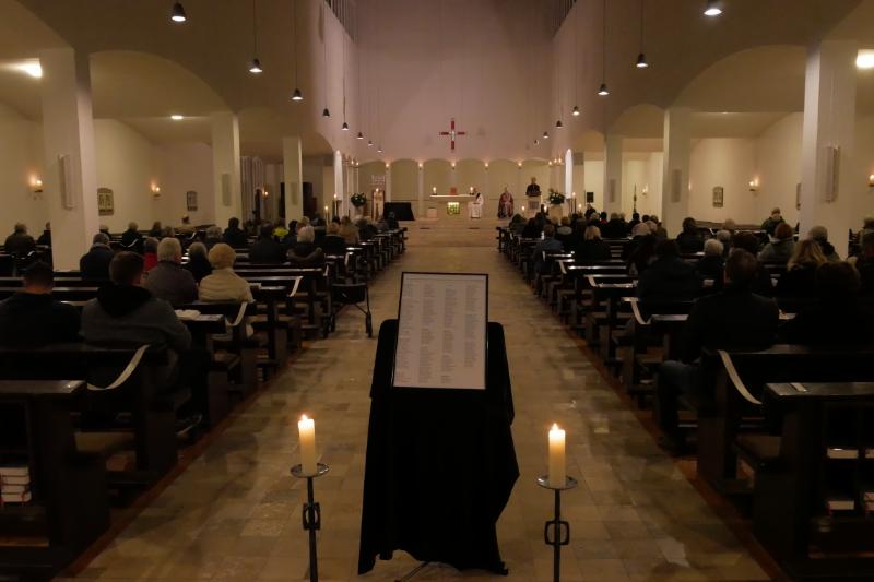 Die Angehörigen der Verstorbenen der vergangenen 12 Monate wurden per Brief zur Mitfeier dieser Gottesdienste eingeladen und viele sind dieser Einladung gefolgt. Die Bilder stammen vom Gottesdienst in der Heilig Kreuz Kirche, den Kaplan Christian Fechtenkötter zelebriert hat.
