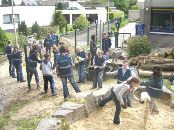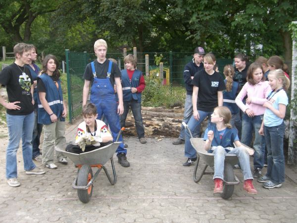 So nahm sich die Landjugend in Barlo vor, Weihnachtshütten für den Weihnachts- oder Töpfermarkt zu bauen. Die Messdiener und die Pfadfinder aus Hl. Kreuz hatten gleich zwei Projekte zu bewältigen. Am St. Vinzenzwohnverband "Mobile" (altes Pfarrhaus Hl. Kreuz), galt es die Terasse neu zu gestalten und an der Ki-Ta am Gerburgisheim mussten die Außenanlagen neu gestaltet werden. So haben insgesamt über 70 junge Leute aus Liebfrauen bei der (fast ) bundesweiten Jugendaktion mitgemacht!