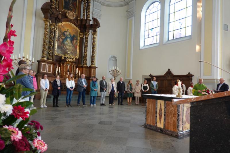 Am vergangenen Sonntag, 27. September 2025, befanden sich unter der Gottesdienstgemeinde um 11.30 Uhr in der Liebfrauenkirche auch 19 Frauen und Männer, die in den vergangenen Monaten einen Ausbildungskurs zur Leitung von Gottesdiensten absolviert hatten. Unter ihnen waren Gemeindemitglieder aus St. Gudula Rhede sowie St. Josef, St. Georg und Liebfrauen Bocholt. Im Rahmen der Messfeier wurde ihnen von Franz-Josef Plesker, der den Kurs zusammen mit Pastoralreferentin Ute Gertz geleitet hatte, und Dechant Rafael van Straelen das Zertifikat überreicht. Diese Frauen und Männer werden nun in ihren Pfarreien als Ehrenamtliche zukünftig Gottesdienste vorbereiten, gestalten und mit der Gemeinde feiern. Im Anschluss an den Gottesdienst mit Zertifikatsübergabe kamen die engagierten Ehrenamtlichen und andere Gäste zu einem Empfang und zur Begegnung bei Getränken und Imbiss zusammen. Diese Gelegenheit nutzen die Kursteilnehmenden, um den beiden Kursleitungen Ute Gertz und Franz-Josef Plesker für die Kursgestaltung herzlich zu danken.