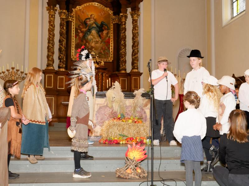 In der vollen Kirche feierten Pfarrer Axel Gehrmann und Pfarrer Rafael van Straelen einen stimmungsvollen Gottesdienst. Der Kinderchor Herz Jesu unter Leitung von Frau Hebing gestaltete mit dem Musical "Wir feiern Erntedank" diese Feier mit. Allen, die diesen Gottesdienst vorbereitet und mitgestaltet haben sei an dieser Stelle herzlich gedankt! Im Anschluss an den Gottesdienst gab es bei Suppe und Getränken noch die Möglichkeit zum Austausch.
