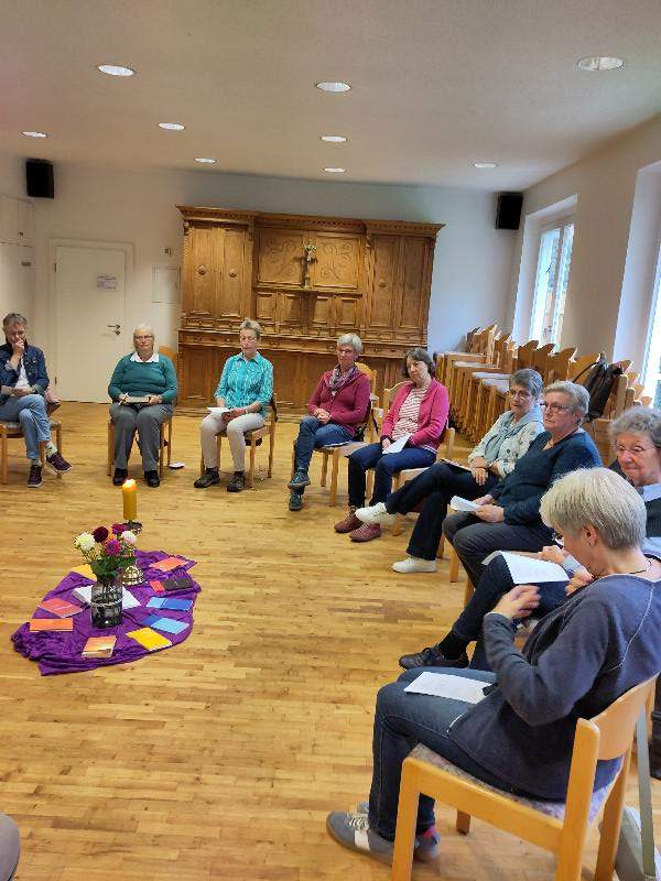 Am Samstag trafen sich Frauen der kfd, die Gottesdienste vorbereiten, zu einem Besinnungsvormittag. Wir beschäftigten uns mit Bibeltexten und den dazu passneden Gedidchten von Andreas Knapp. Es war sehr intersant, die Bibelstelle und das passende Gedicht zu lesen, das die Aussage der Bibel in die heutige Zeit bringt. Es war ein Vormittag mit guten Gespächenund Anregungen die Bibeltexte zu interpretieren. Der Vormittag endete mit einer Wortgottesfeier.