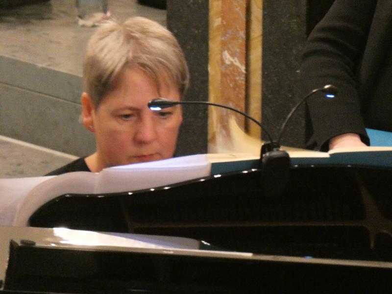 wurde der Projektchor am Klavier von Linde Müller-Blaak, die mit viel Feingefühl den anspruchsvollen Klavierpart bestritt, sowie den vier Gesangssolisten.