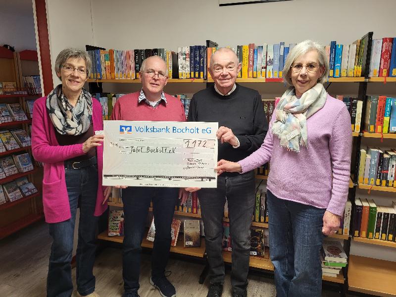 Auch in diesem Jahr freut sich das Team der Bücherei St. Helena über sehr hohe Ausleihzahlen und viele neue Anmeldungen. Die Teilnahme mit einer Tombola beim Weihnachtsmarkt in Barlo war wieder ein voller Erfolg. Der Reinerlös dieser Aktion in Höhe von mehr als tausend Euro wurde den Vertretern der Tafel Bocholt e.V. bei ihrem Besuch in der Bücherei übergeben.