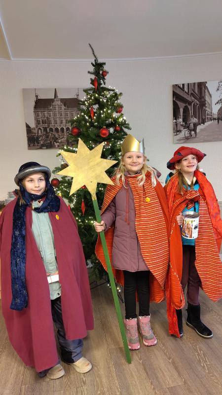 In der Stadt und in Barlo sind die Liebfrauen-Sternsinger unterwegs. In Aussendungsfeiern wurden die Kreide und die Sternsinger gesegnet um so den Segen 20 * C + M + B * 26 in die Häuser, Wohnungen und den Menschen zu bringen.Eine Gruppe machte sich sofort auf zum Diepenbrockheim und ins Hospiz. Um dort den Segen zu bringen. Die Bewohner freuten sich sehr über den Besuch.